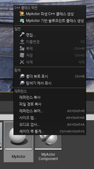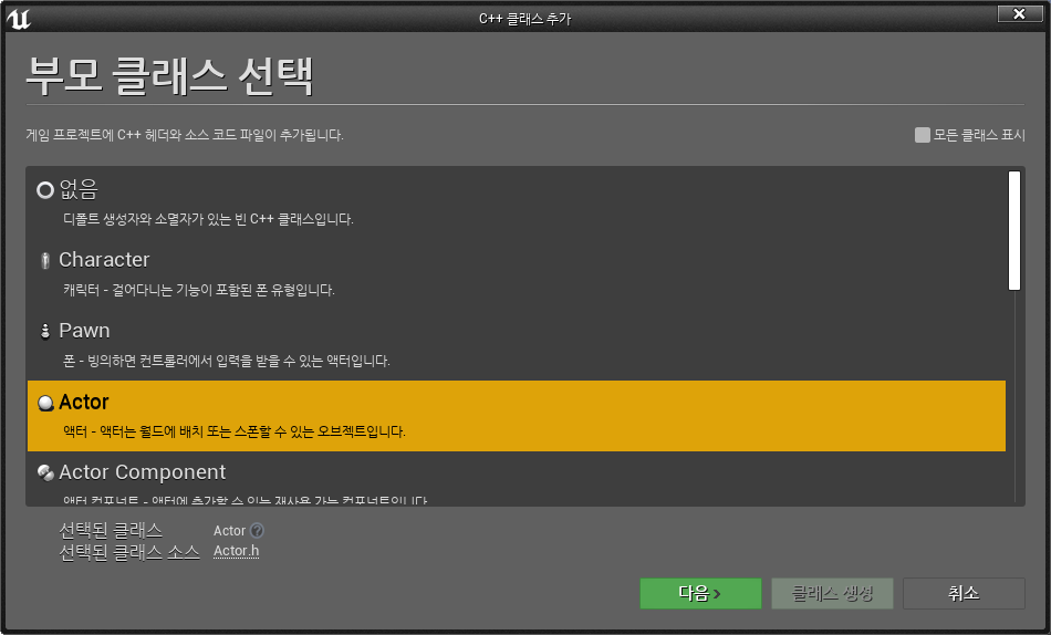 먼저 C++ 클래스중 Actor클래스를 추가하면