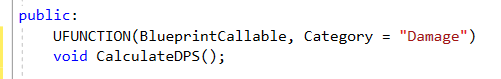 UFUNCTION(블루프린트에서 호출가능, 카테고리) 매크로로 void CalculateDPS라는 자체함수 만들기