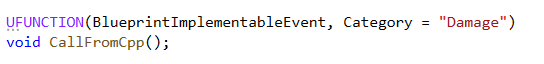 추가적으로 BlueprintNativeEvent를 사용하면 virtual 함수를 추가적으로 만들어서 블루프린트에서 호출안하면 cpp에서 코더가 정의한 코드로 실행가능하도록 구현 가능 (변수의 초기값처럼)