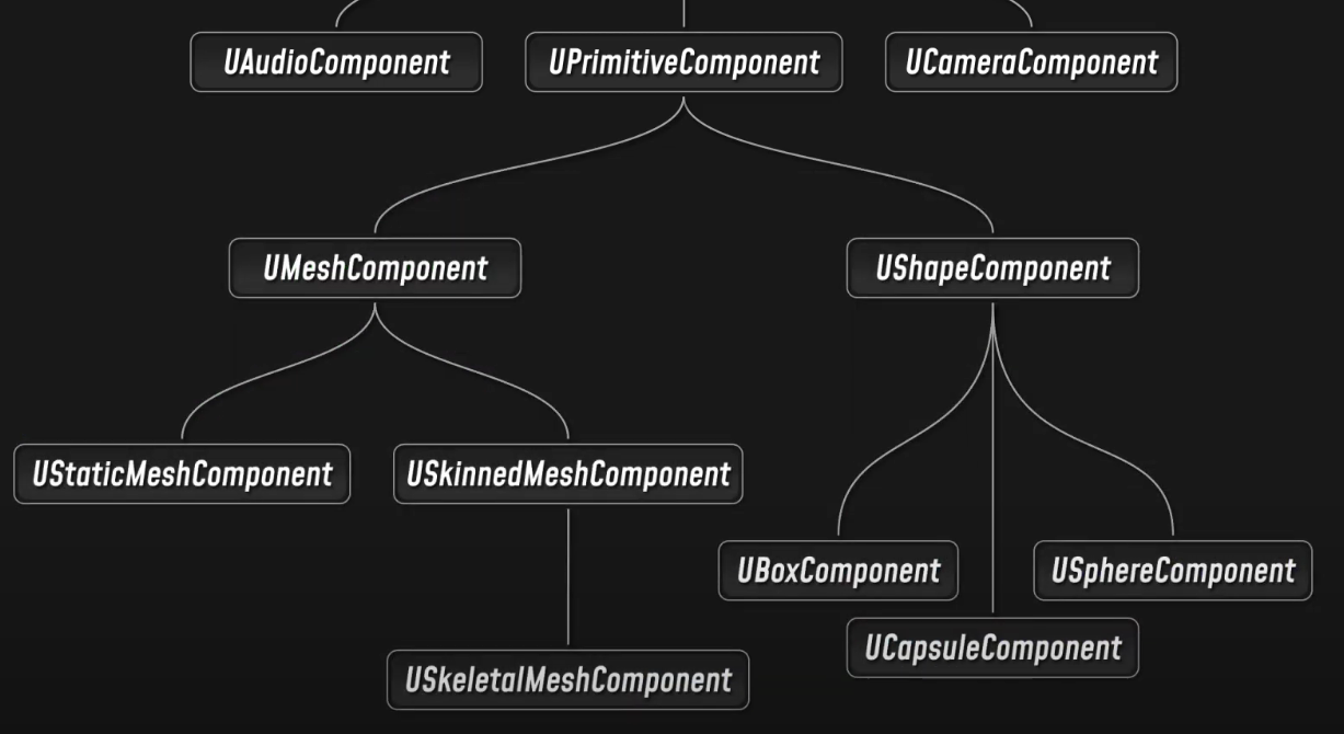 이후에 오디오, 카메라, 그리고 보여줄 형태의 매쉬, 크기, 형태, 콜리전범위 같은것을 설정하는 PrimitiveComponent