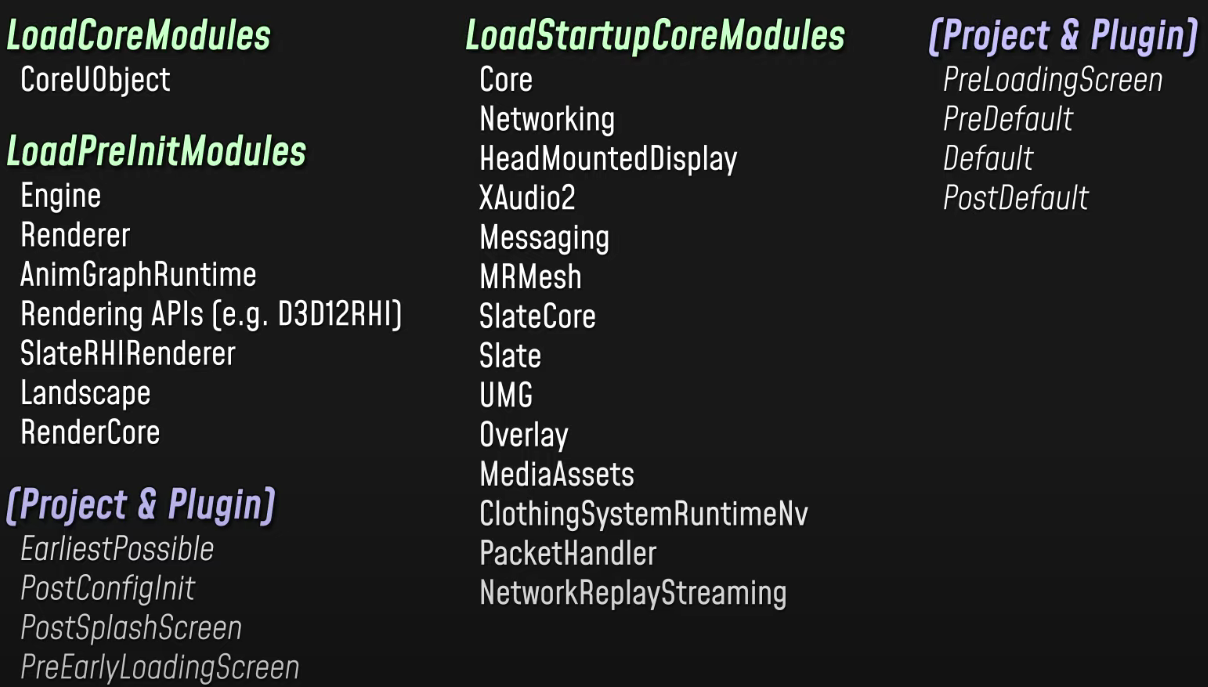 엔진은 수많은 모듈들을 사용함 코어 모듈, 초기화모듈, 그리고 프로젝트 코드, 커스텀 플러그인 등..