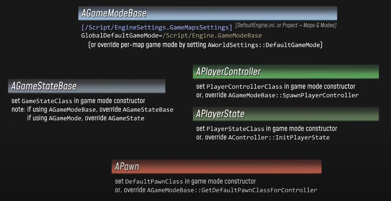 --1) AGameModeBase 게임의 규칙, 가장큰 권한, 서버만 가지고 있음