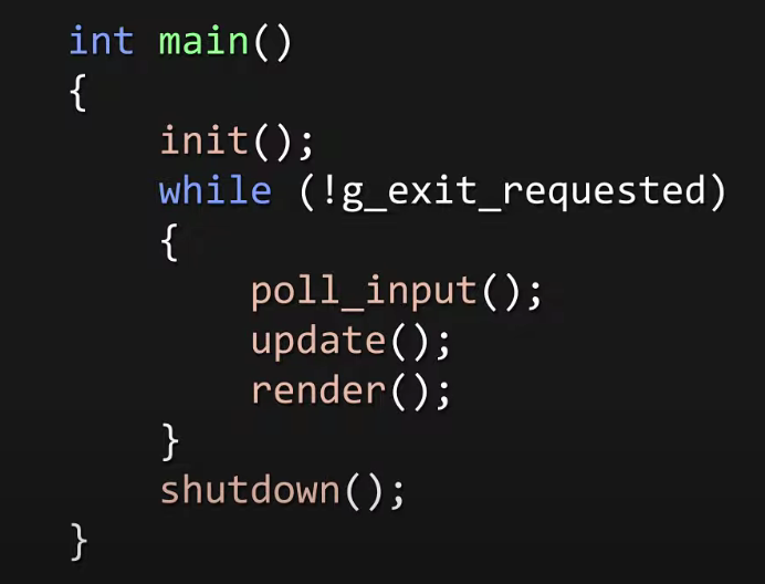main함수 부터 시작하여 while (플레이어의 인풋, 업데이트 , 렌더링) 무한반복