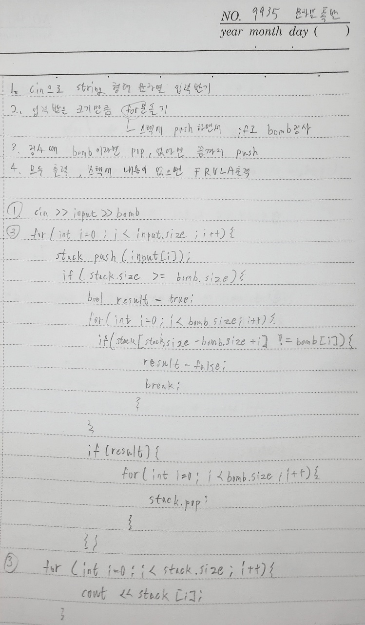 if (v[v.size() - bomb.size() + i] != bomb[i]) {