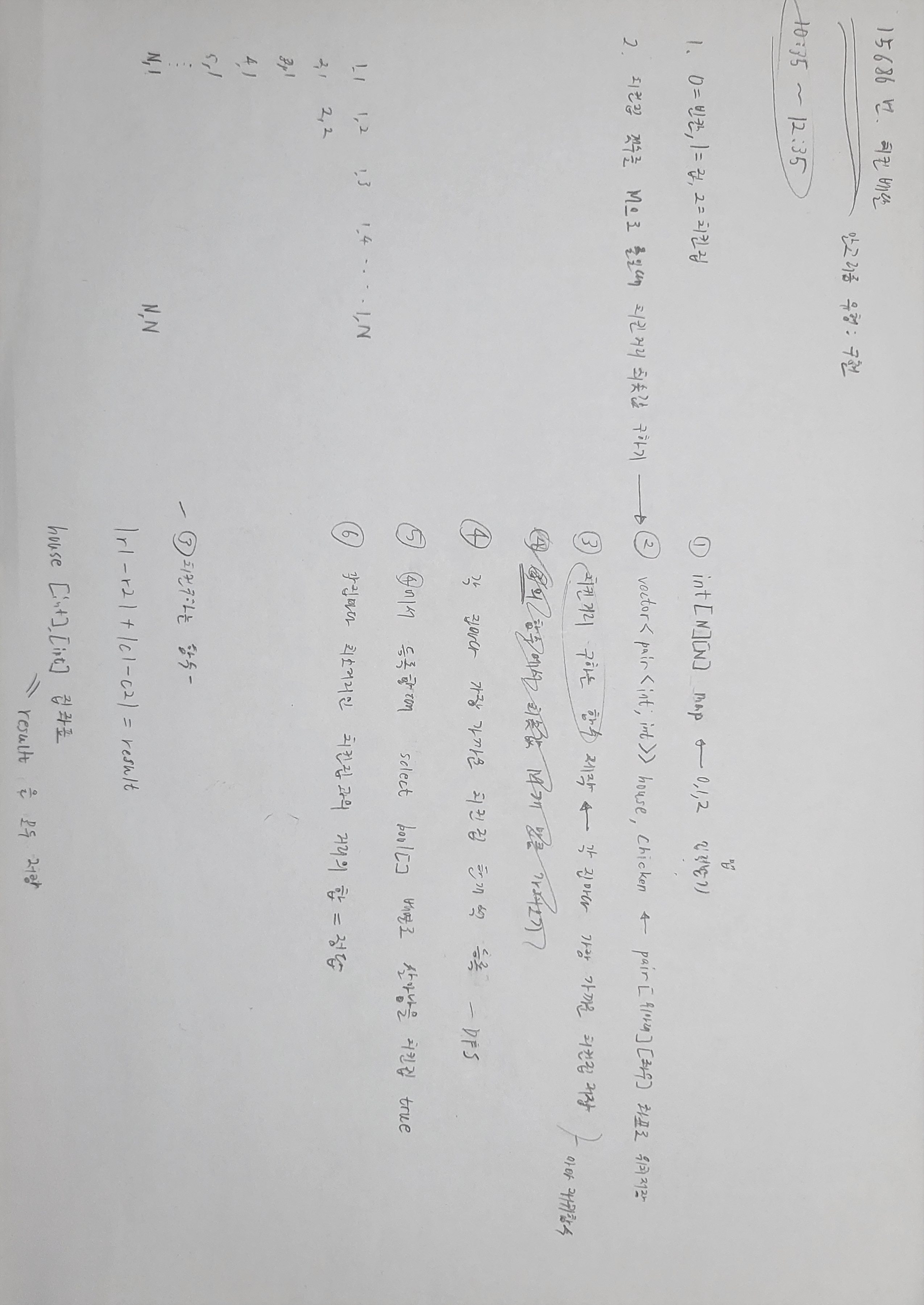 https://www.acmicpc.net/problem/15686 15686번: 치킨 배달 크기가 N×N인 도시가 있다. 도시는 1×1크기의 칸으로 나누어져 있다. 도시의 각 칸은 빈 칸, 치킨집, 집 중 하나이다. 도시의 칸은 (r, c)와 같은 형태로 나타내고, r행 c열 또는 위에서부터 r번째 칸 www.acmicpc.net 공유하기 게시글 관리 Nerd 'Study > Algorithm' 카테고리의 다른 글 백준 14500번 (0) 2022.04.25 백준 2011번 (0) 2022.04.11 백준 7576번 (0) 2022.04.03 백준 2206번 (0) 2022.03.28 백준 13140번 (0) 2022.03.27