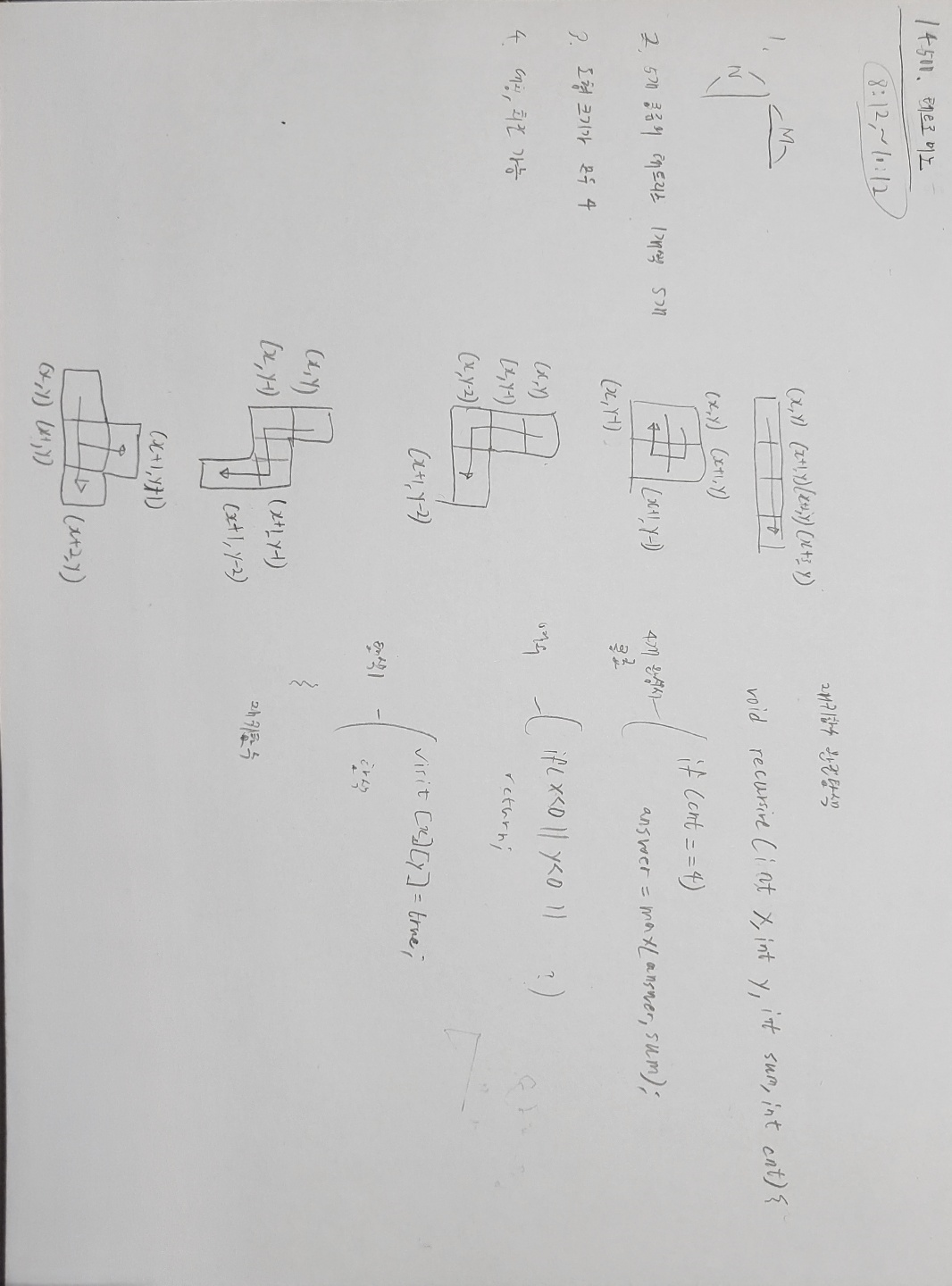 https://www.acmicpc.net/problem/14500 14500번: 테트로미노 폴리오미노란 크기가 1×1인 정사각형을 여러 개 이어서 붙인 도형이며, 다음과 같은 조건을 만족해야 한다. 정사각형은 서로 겹치면 안 된다. 도형은 모두 연결되어 있어야 한다. 정사각형의 변 www.acmicpc.net 공유하기 게시글 관리 Nerd 'Study > Algorithm' 카테고리의 다른 글 백준 15686번 (0) 2022.04.18 백준 2011번 (0) 2022.04.11 백준 7576번 (0) 2022.04.03 백준 2206번 (0) 2022.03.28 백준 13140번 (0) 2022.03.27